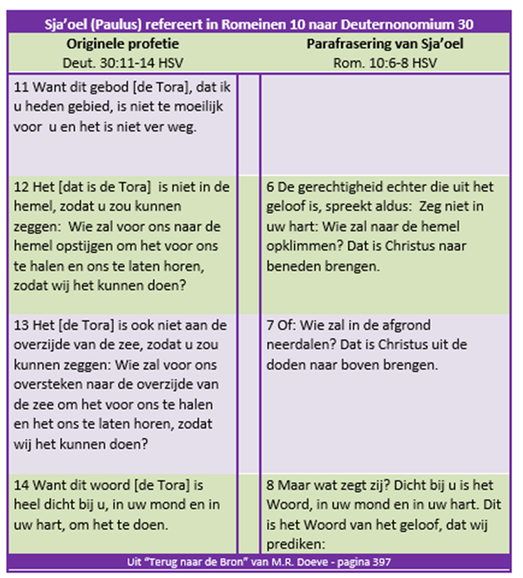 "Want het doel waarop de Tora zich richt, is de Messias die rechtvaardigheid aanbiedt aan een ieder die gelooft."